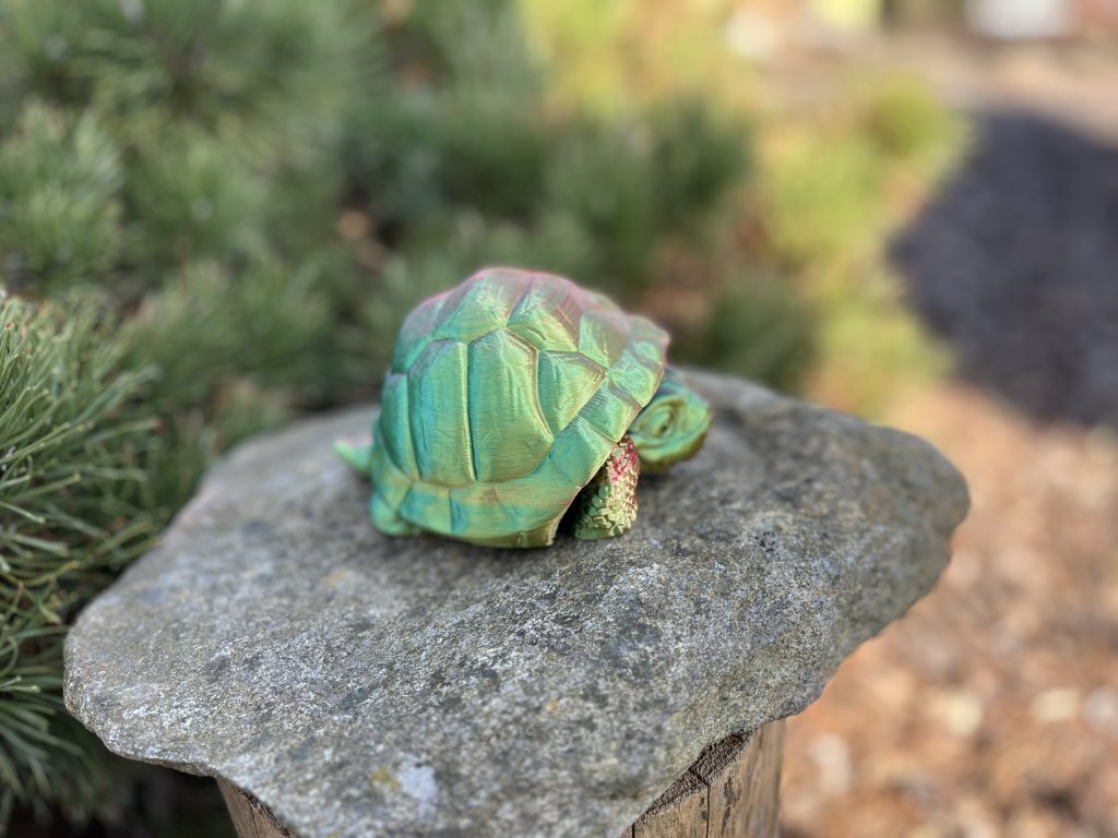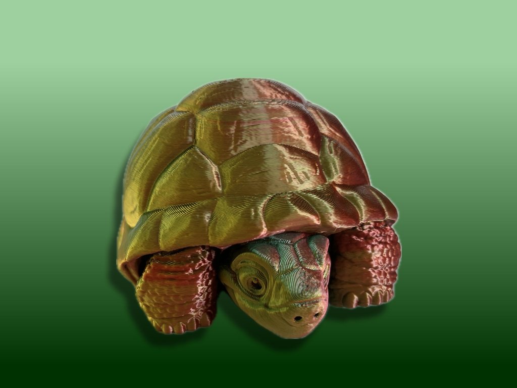 želvička je pohyblivá, hlava, nohy a ocásek lze schovat do krunýře a při zvednutí želvy nahoru končetiny samy vylezou.